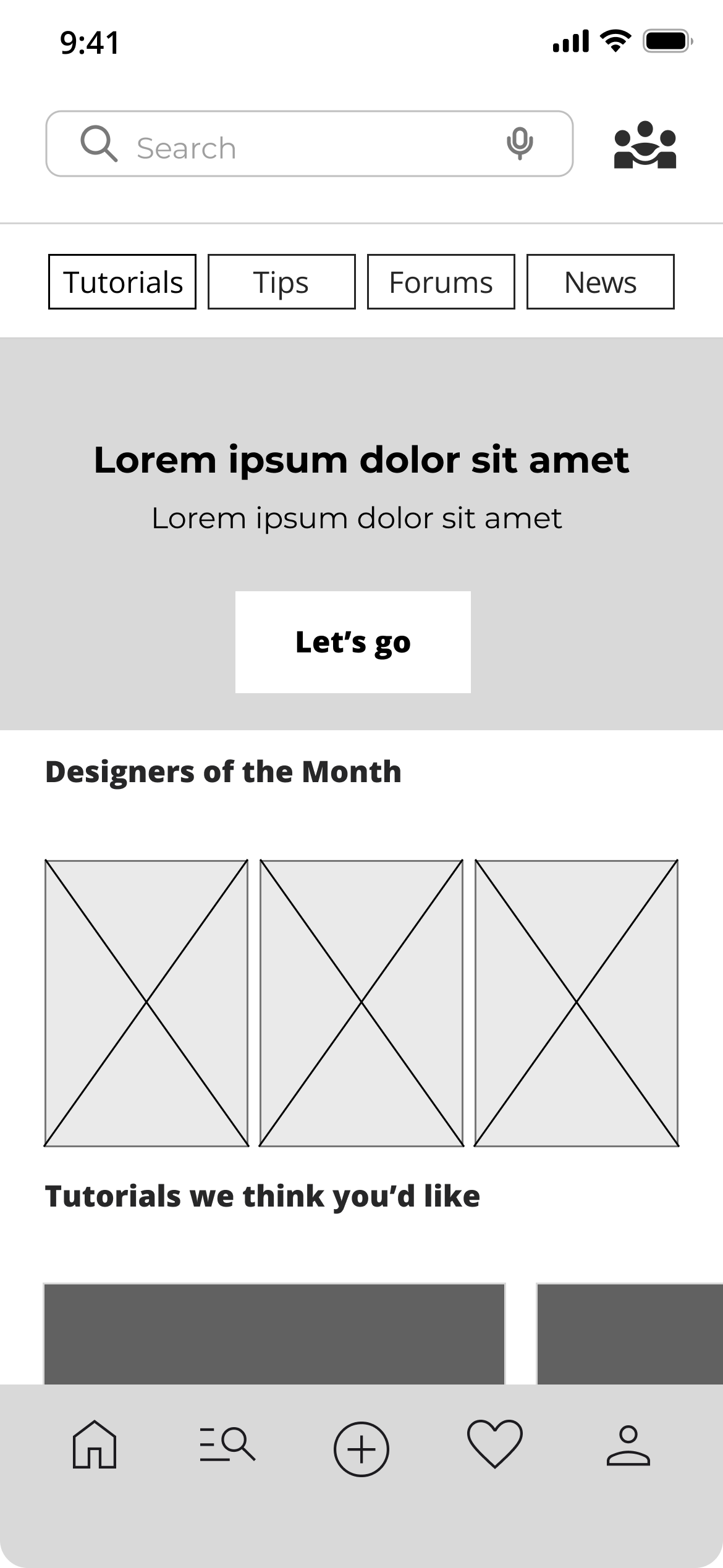 - intuitively integrate learning resources (tutorials, designer profiles) so users can develop their skills without feeling isolated or overwhelmed?
