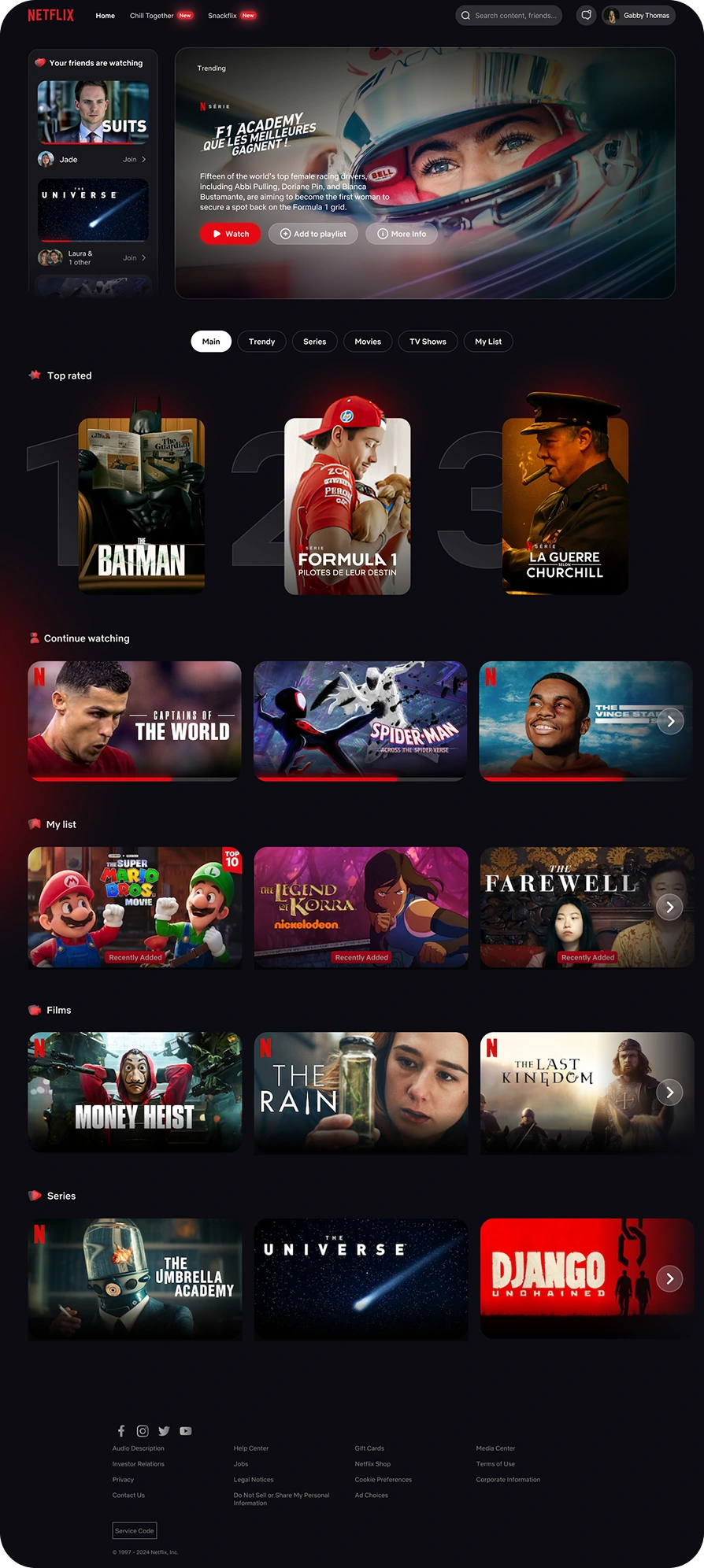 Netflix is a top streaming platform, yet its web interface limits social interaction and ease of use. This redesign makes the web experience immersive, social, and engaging, turning content consumption into a shared, enjoyable ritual.