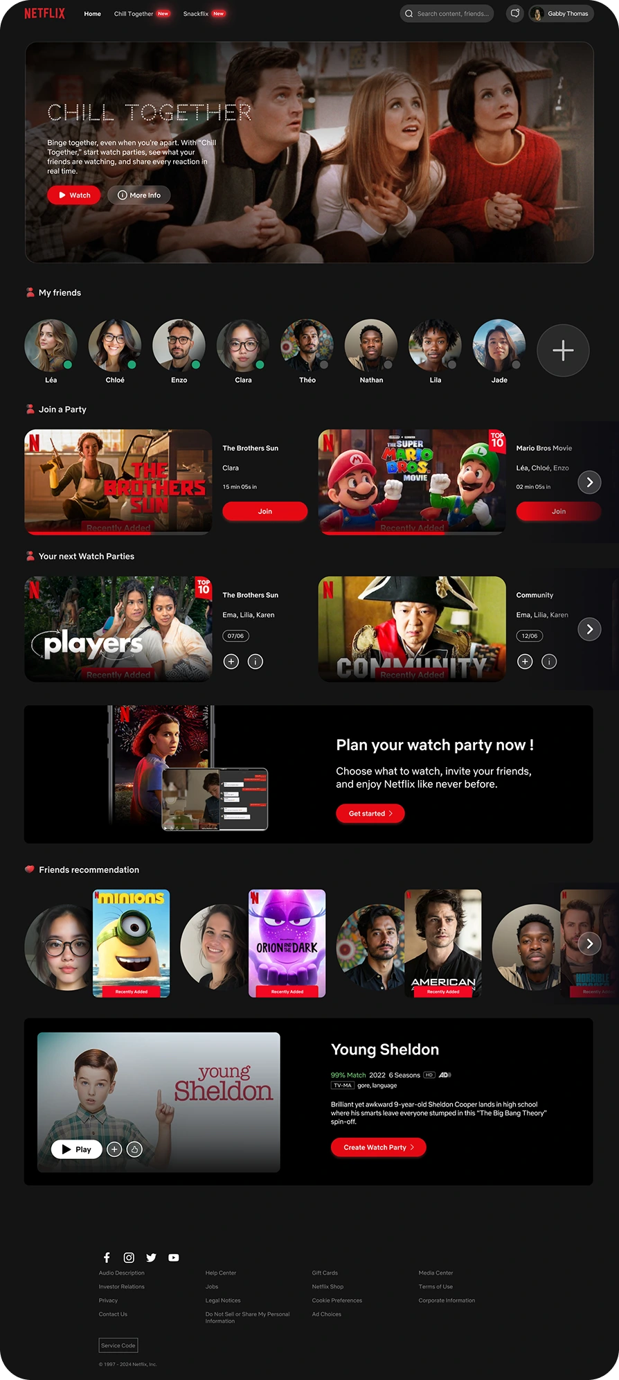 Transform Netflix desktop into a social, immersive, and ritualised streaming platform, making watching content a shared and memorable experience.